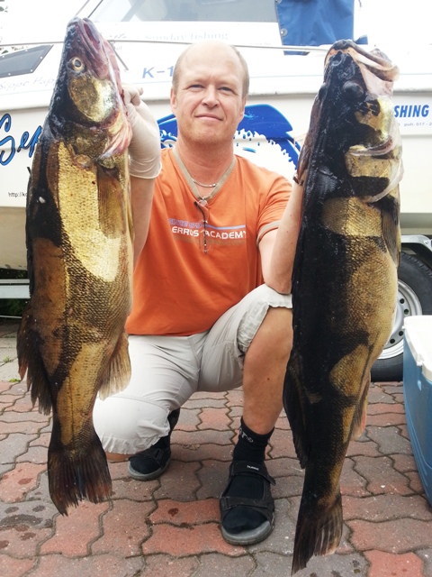 Sepedeus-kalastuksen kotisivuille. Olen kalastanut koko ikäni ja tehnyt vaappuja noin 15 vuotta. Kysynnän kasvaessa päätin tehdä kotisivut, mikä helpottaa vaappujen saantia asiakkaille. SM - kisoissa 2013, kaikki saamamme kalat oli Sepeteuksien uhreja, melkein 84 000 pistettä ( 28 kuhaa ja 12 haukea) , jotka olisi riittänyt kolmanteen sijaan henkilökohtaisessa kilpailussa. Joukkueena saimme SM-hopeaa Kuvassa kesällä 2013 saamani tuplatärppi Sepeteus - Vaapuilla, kuhat 5,7 kg ja 8,3 kg Seppo Happonen Sepedeus@dnainternet.net ( In English ) |